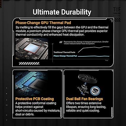 ASUS TUF Gaming GeForce RTX ™ 5070 12GB GDDR7 OC Edition Gaming Graphics Card (PCIe® 5.0, HDMI®/DP 2.1, 3.125-slot, Military-Grade Components, Protective PCB Coating, axial-tech Fans)