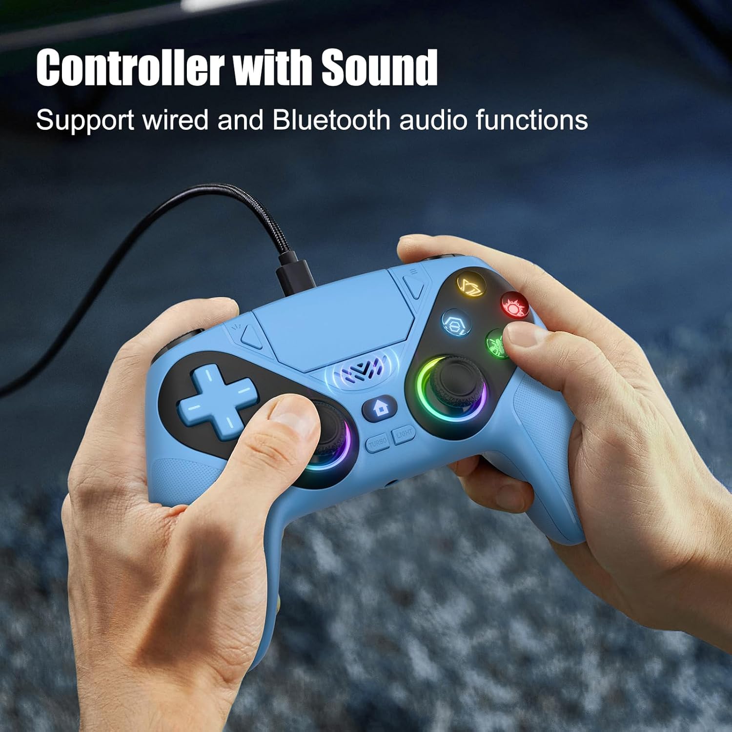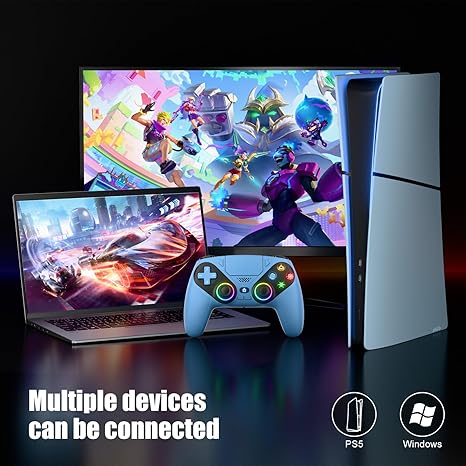 Dinosoo RGB Wireless PS5 Controller – Bluetooth Gamepad for PlayStation 5 & PC with Turbo, Macro, 6-Axis Motion, RGB Lights, Speaker – Blue