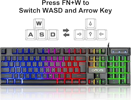 - 7+3+2 ADJUSTABLE LED BACKLIT KEYBOARD and MOUSE ---- Always rainbow color, 3 level of brightness, 2 mode Constant Bright Mode or Circular Breathing Rainbow Mode. Can be adjusted.Mouse has circle rgb backlit and display the level of dpi also through it.