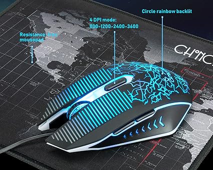 - 7COLOR-BACKLIGHT GAMING MOUSE ---- High-strength sleeved fiber cable and super-fast game engine, anti-skid scroll wheel, 7-color RGB breathing backlight, 4800DPI(800/1600/2400/4800 4 level DPI adjustment),high performance match the keyboard.