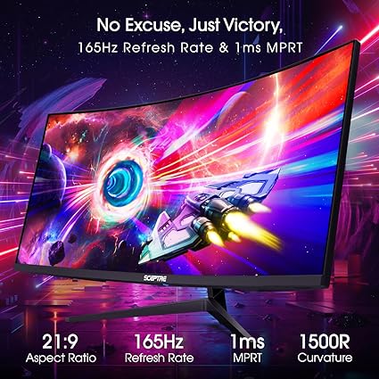 Sceptre 34-Inch Curved Ultrawide WQHD Monitor 3440 x 1440 R1500 up to 180Hz/165Hz DisplayPort x2 99% sRGB 1ms Picture by Picture, Build-in Speakers Machine Black 2025 (C345B-QUT168)